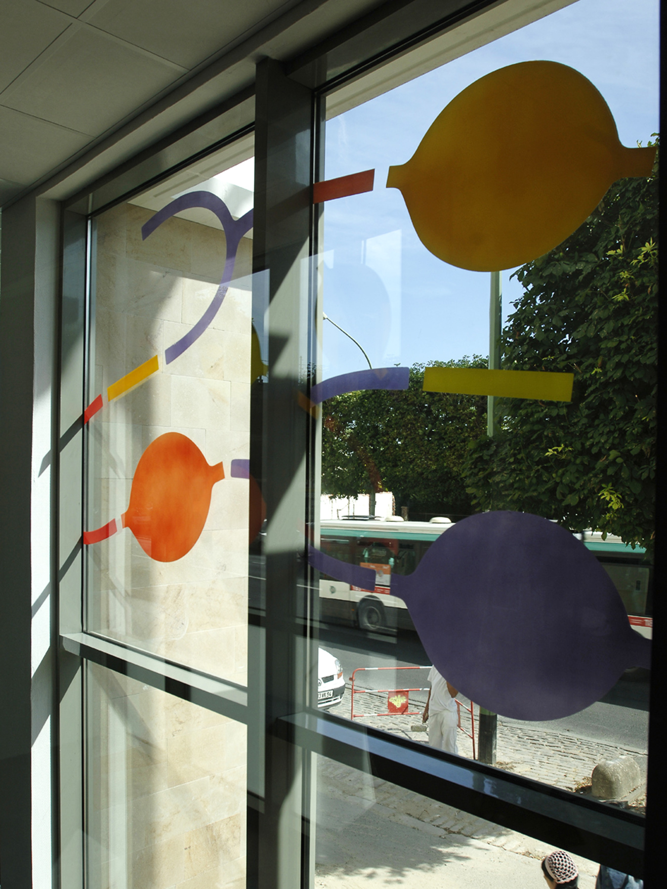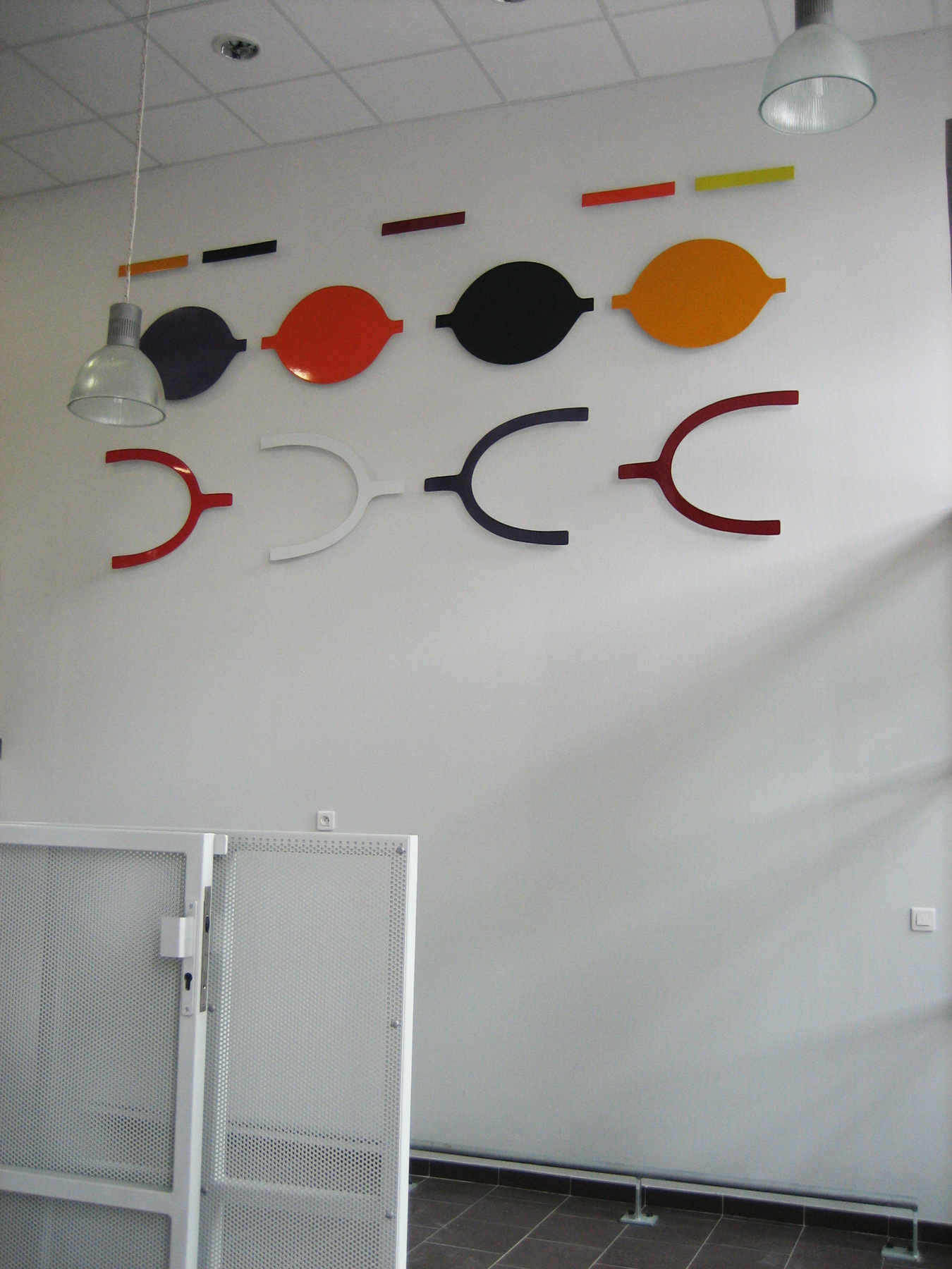 « L’œuvre, sculpture en acier émaillé et vitraux, tient compte du contexte urbain du bâtiment tout en développant un langage et une coloration esthétique et poétique en accord avec la fonction du lieu ; elle se déploie sur l’ensemble de la façade de la crèche ainsi que dans le hall d’accueil, opérant le lien entre l’intérieur et extérieur. » Catherine Viollet, conseillère culturelle à la Mairie de Vitry-sur-Seine.